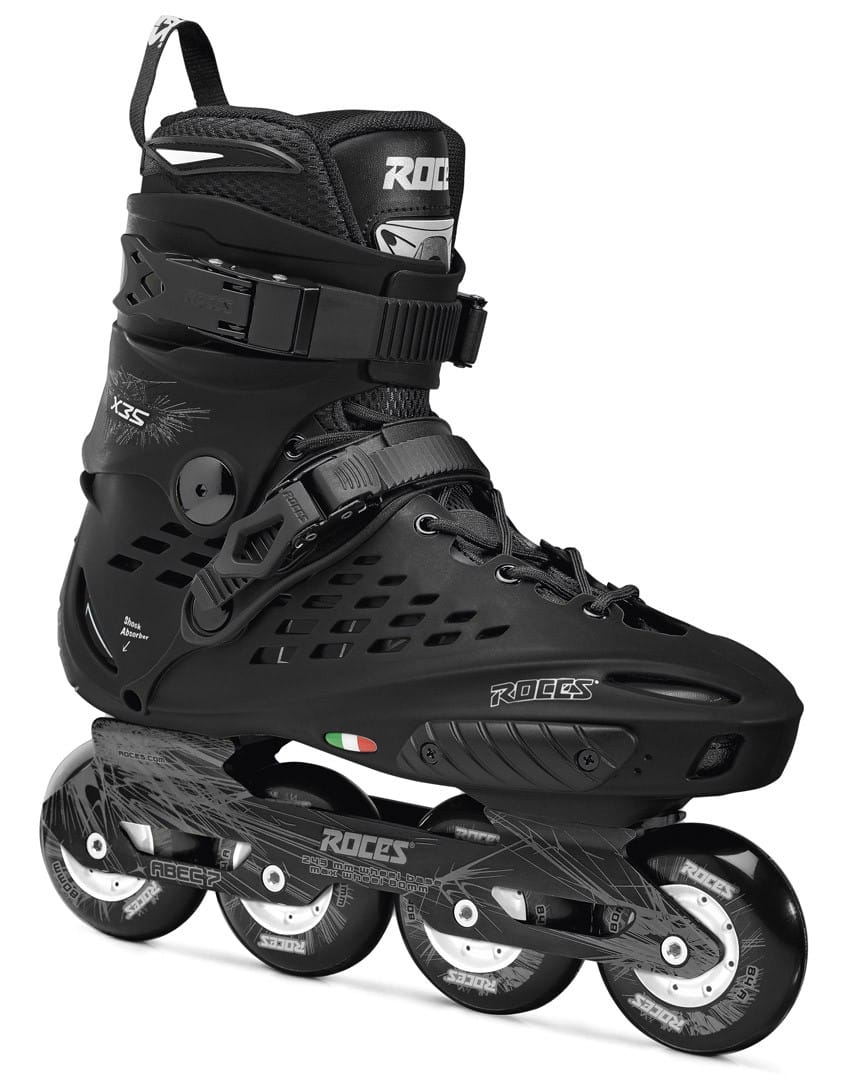 Le Roces X35 est un modèle sorti pour la première fois en 2015. Au fil des années, il s’est décliné en gris, en noir, avec des pointes de rouge. Les modèles après 2019 bénéficient d’une platine TIF (The Invisible Frame) dont la sérigraphie donne l’impression que la platine est transparente. Il s’agit d’un roller freeride. La première version était à 179 € mais son tarif avoisine désormais les 265 €.