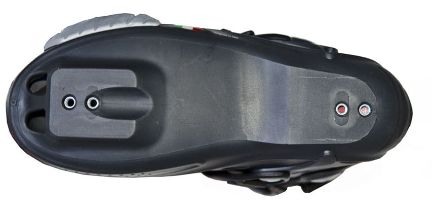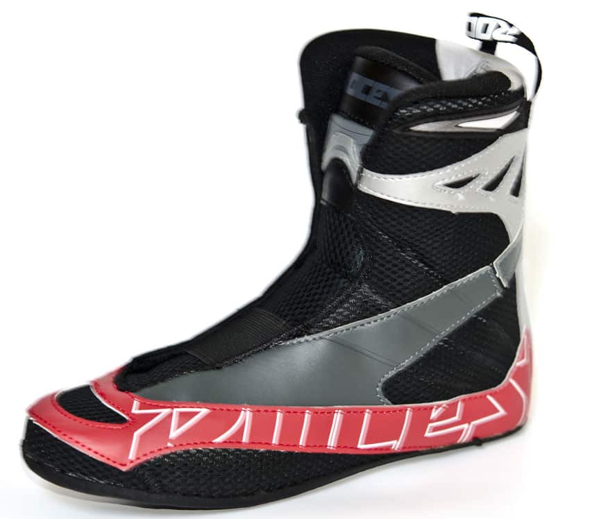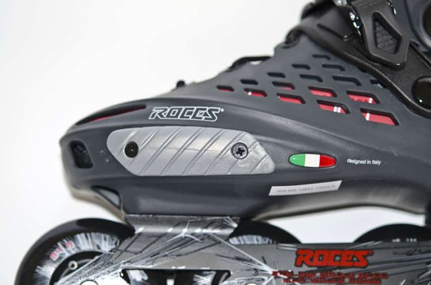 Le Roces possède une coque similaire au Vidi. Elle est montante est très aérée avec de nombreuses ouïes d’aération, tant sur la partie avant que sur les flancs ou l’arrière. Sa coque rigide possède aussi un renfort latéral remplaçable et dévissable. Le cuff se fixe à la base de la chaussure par une vis à empreinte Allen.