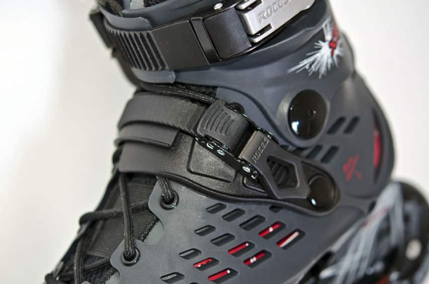 Le système de serrage repose sur une combinaison d’un lacet sur le bas du pied et de deux boucles micrométriques sur le cou-de-pied et le cuff. C’est le procédé le plus répandu sur les rollers de freeride mais aussi l’un des plus efficaces et des plus précis qui soit.